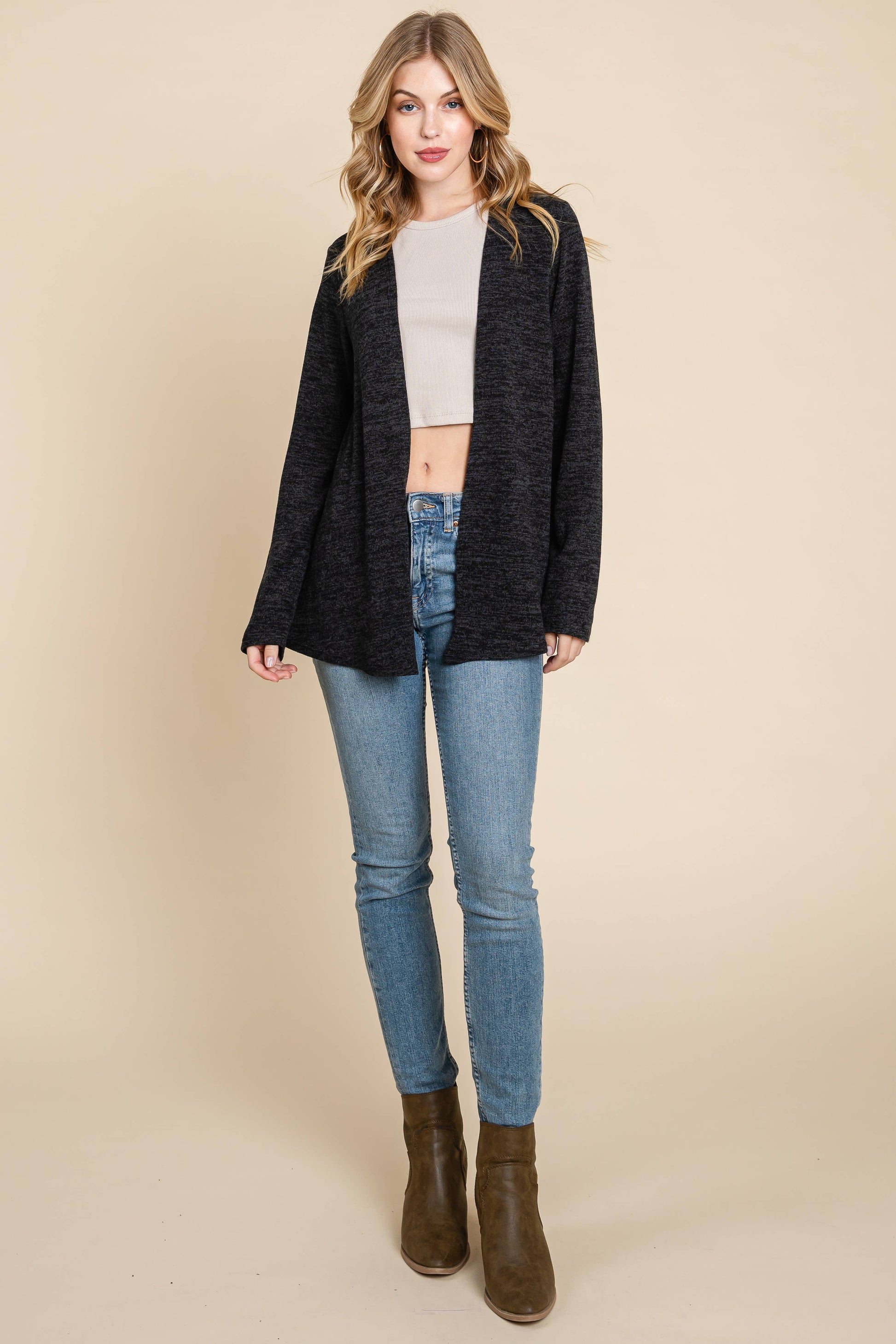 Solid Knit Open Front Cardigan