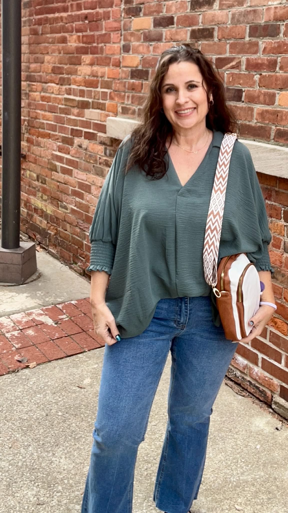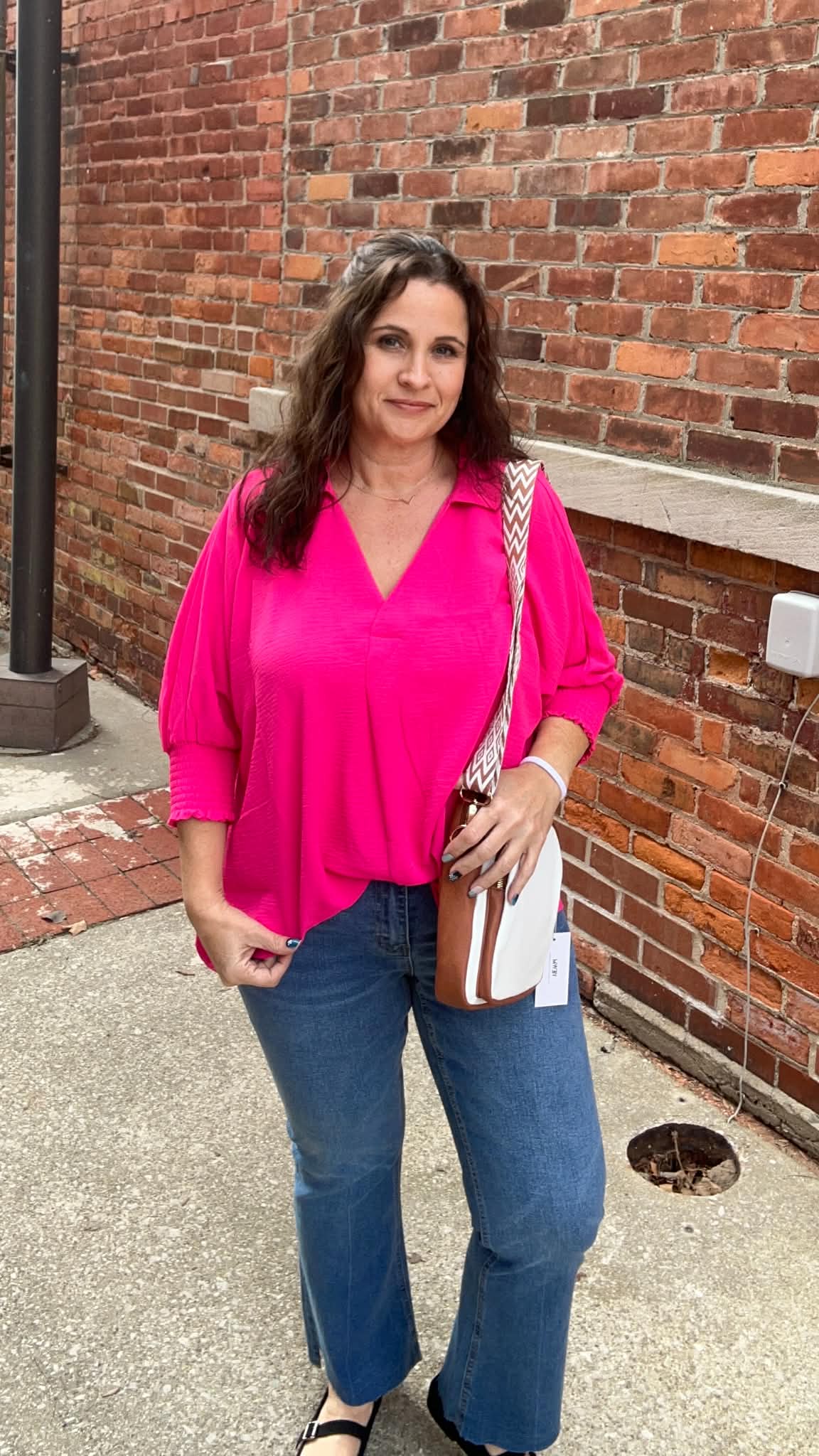 Air Flow Collar Tee With Smocked Sleeve Band Top